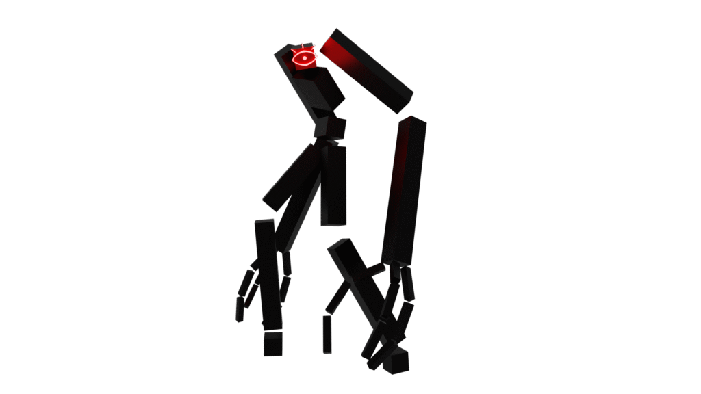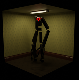 The characters of the Monoliths were inspired by a mod for the game Minecraft called Dimensional Doors. Monoliths are a type of entity in the mod that spawn in the dimension Limbo, an all black void full of these creepy black bricks with a single glowing red eye. This design has stuck with me for quite some time now, and was originally one of the first projects I worked on when I first got into 3D modelling in Blender. As a homage to my original work and since I was out of ideas I decided to visit the first concept I ever explored when it comes to 3D art, the famous internet myth The Backrooms.
