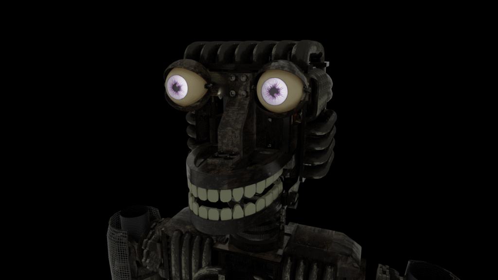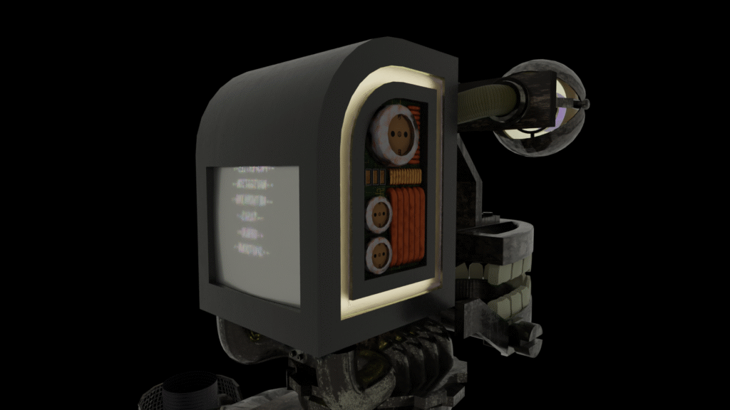 After the torso was completed, my next course of action was figuring out what to do for the head, as that would help shape the rest of the design. In the end I am very proud of the design, it takes a lot of inspiration from the original endo-skeleton while also having it’s own unique design. The eyes were a particular feature that I really wanted to work on as I had the idea for the eyes to be made of a type of plastic that would allow light through for a fun challenge, and in the end I think they turned out great.