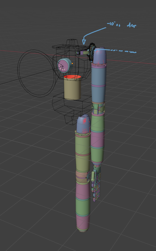 Working on the arm was a lot of fun. The elbow was a big challenge though as I had to make it realistic but not look weak or unnatural. The original design was just a simple hinge and made the arm look too empty. To fix this I added an elbow bar, cowls to the end of each arm and plates to the sides of the elbow. I am extremely happy with the result as it looks technical and most importantly, it looks cool.