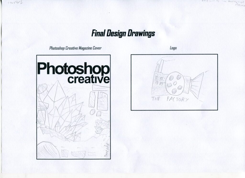 We had to first draw out our concept designs then scan them to upload for our assignment. My ideas for logo stayed the same for the most part, but the magazine had many different designs.